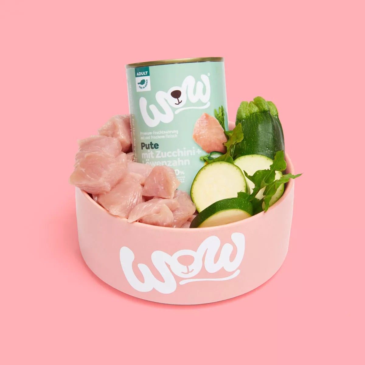 Popoln meni WOW mokre hrane s puranom, primerne za odrasle pse vseh velikosti in pasem. Obogaten je z svežo zelenjavo, visokokakovostnimi zelišči in minerali. Ne vsebuje žit!